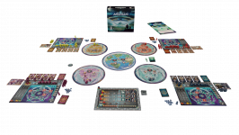 In addition to having a strong dose of controllability (the luck factor is minimal), the game features an innovative starred action-selection-system that confronts players with interesting choices: players can reincarnate their gods by performing their actions in a precise sequence, on pre-established paths of their starred player board, or they can give up some deities, jumping freely from one action to another of their board, to choose from time to time the situationally best actions.
